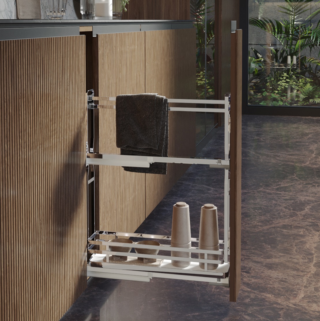 Upgrade your storage with the Select 150mm Towel Rail Pull-Out in chrome. With its elegant finish and practical features, this pull-out system is perfect for kitchens and bathrooms. Key features include: