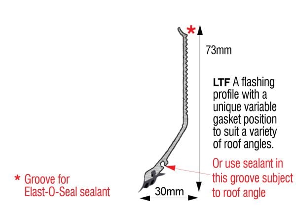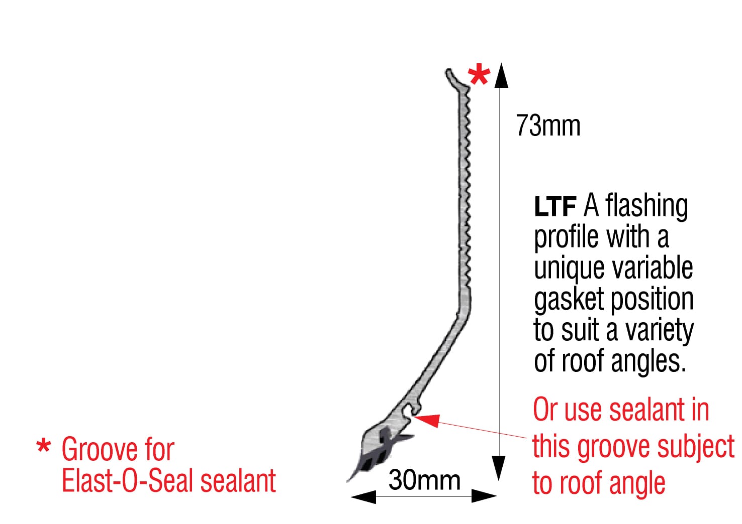 Capex LTF profile – A flashing profile with unique variable gasket position to suit a variety of roof angles.
