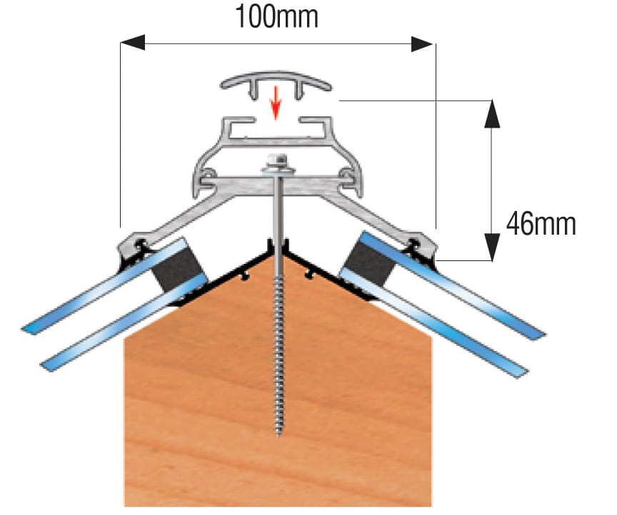 Available in two widths – 100mm and 175mm. Robust aluminium sections in several different lengths supplied with high quality supple EPDM Gasket in-situ. CFX MK2 is suitable as standard for the ridge with a roof pitch angle of 15-35 degrees. For steeper angle from 35-50 degrees remove the standard gasket and insert a Hip and Valley gasket. Crests and finials slide into and are secured into the MK2 ridge system.