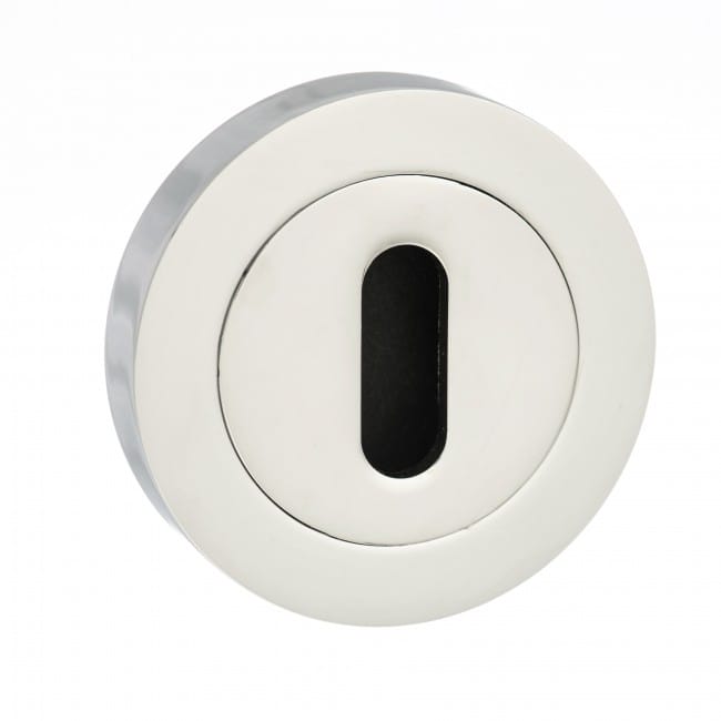 Designer Modern round key escutcheon – Polished and satin Chrome and dual finish options available