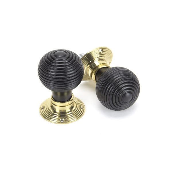 Ebony & Polished Brass Beehive Mortice/Rim Knob Set