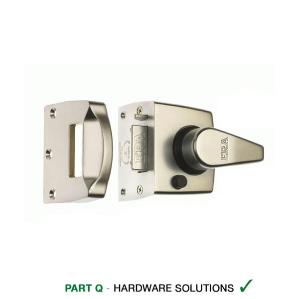 89mm ERA BS Night latch – Available in polished or satin chrome (60mm backset). Features an integral cylinder pull which protects the cylinder from being drilled and has over 30,000 cut key variations. 20mm bolt throw for greater security and strength. Ideally suited for glass panelled wooden doors. The main lock bolt “automatically” deadlocks, this makes the use of a credit card to force entry virtually impossible.The bolt can also be held in the withdrawn position (only) with the use of the snib feature. The BS High Security Nightlatch conforms to British Standard 3621:2004 (BS EN 12209).