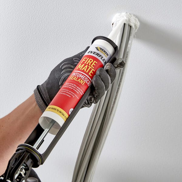 Everflex Fire Mate Sealant is an intumescent is a five hour rated one part, intumescent acrylic sealant that swells when exposed to temperatures in excess of 125°C to prevent the passage of fire and smoke. When exposed to heat, it swells greater than 150% greater than of its original size, creating a char that will resist the passage of fire for up to 5 hours.