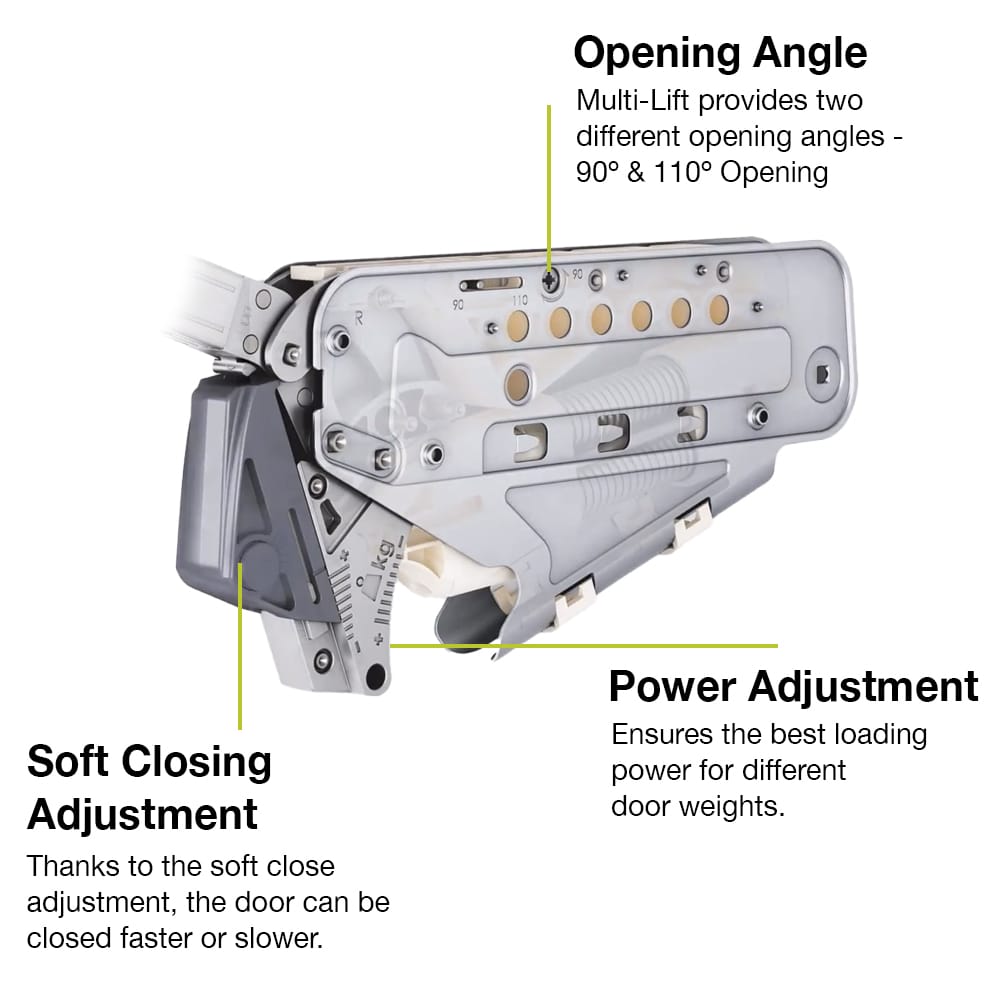 Multi-Lift provides two different opening angles – 90º & 110º Opening