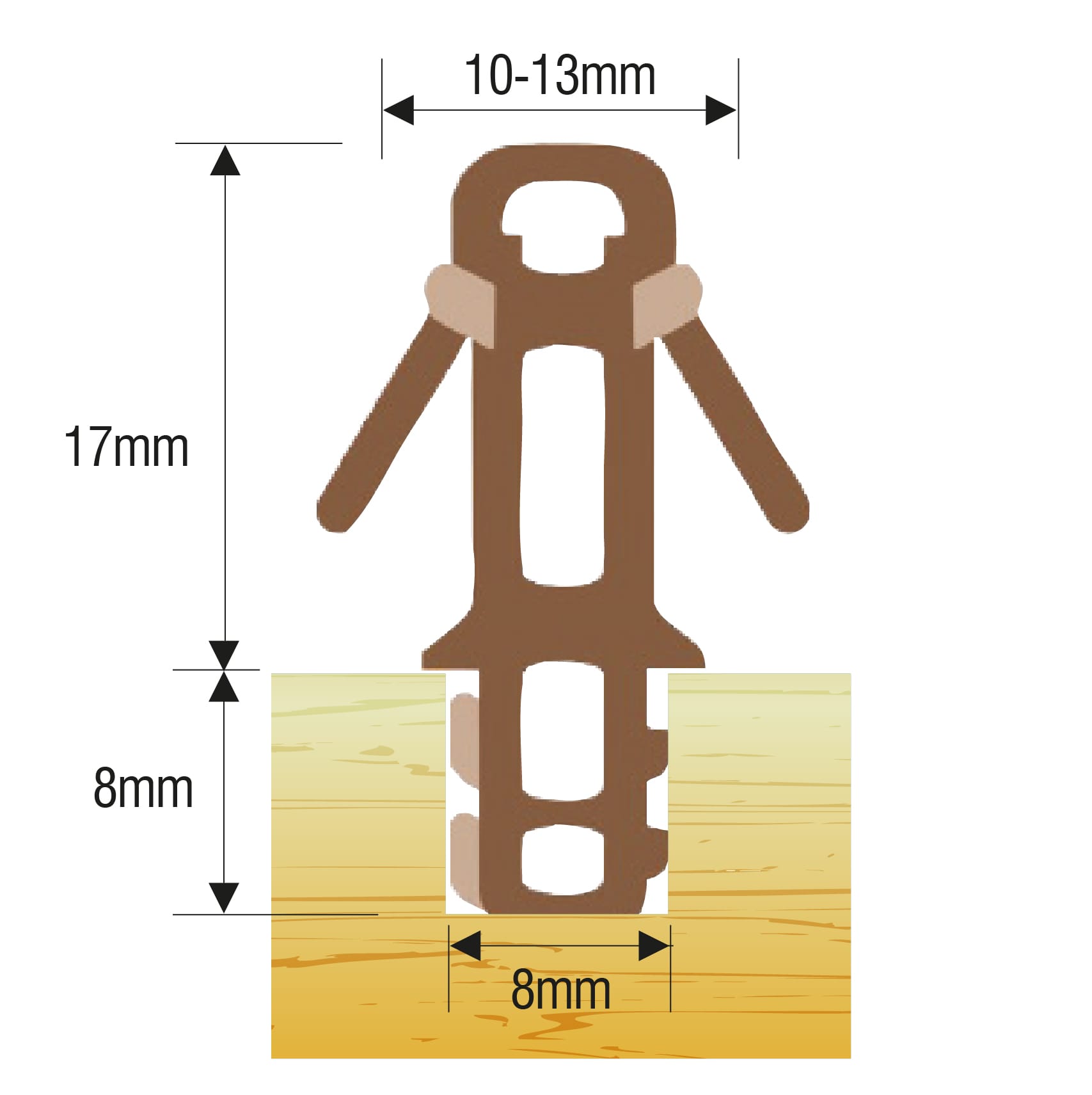 3m Parflip parting bead – Designed with parallel ridged flippers which are friction free, ensuring smooth movement of the sash whilst maintaining a constant high level of weather protection. Available in three depths and in brown, pine or white.