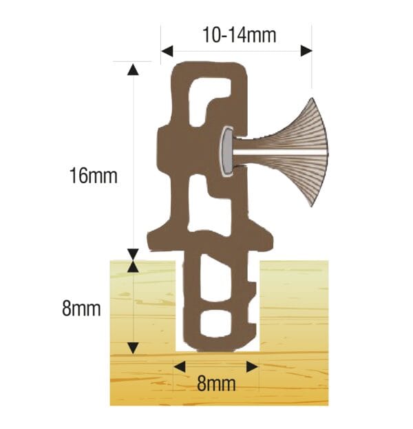 3m 14mm Partex parting bead – A solid construction, UV stable material, with a slide pile seal which operates friction-free and out of sight. Designed to maintain perfect alignment when reversed. Available in brown or white