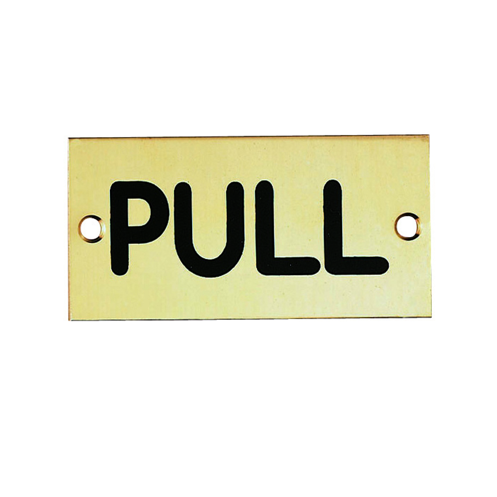 73mm x 35mm Door Signs Push/Pull – drilled and countersunk. Available in Brass or satin anodised aluminium