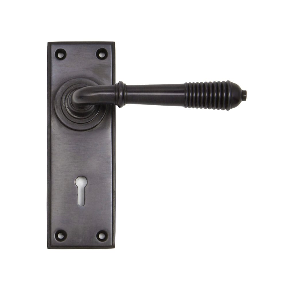 Reeded Lever Lock Set, Aged Bronze