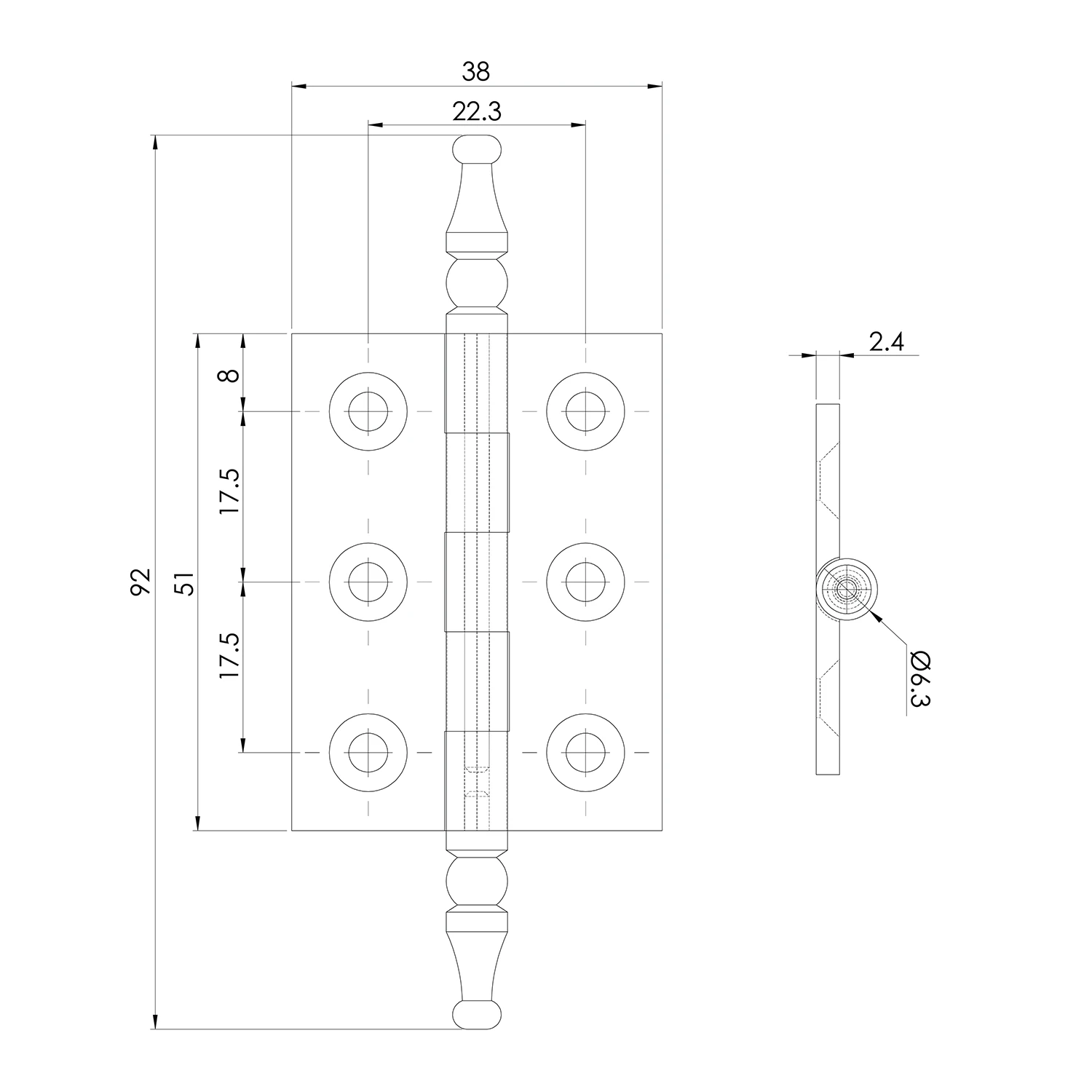 | Hinge Leaf Dimensions | Hinge with Finial Dimensions |