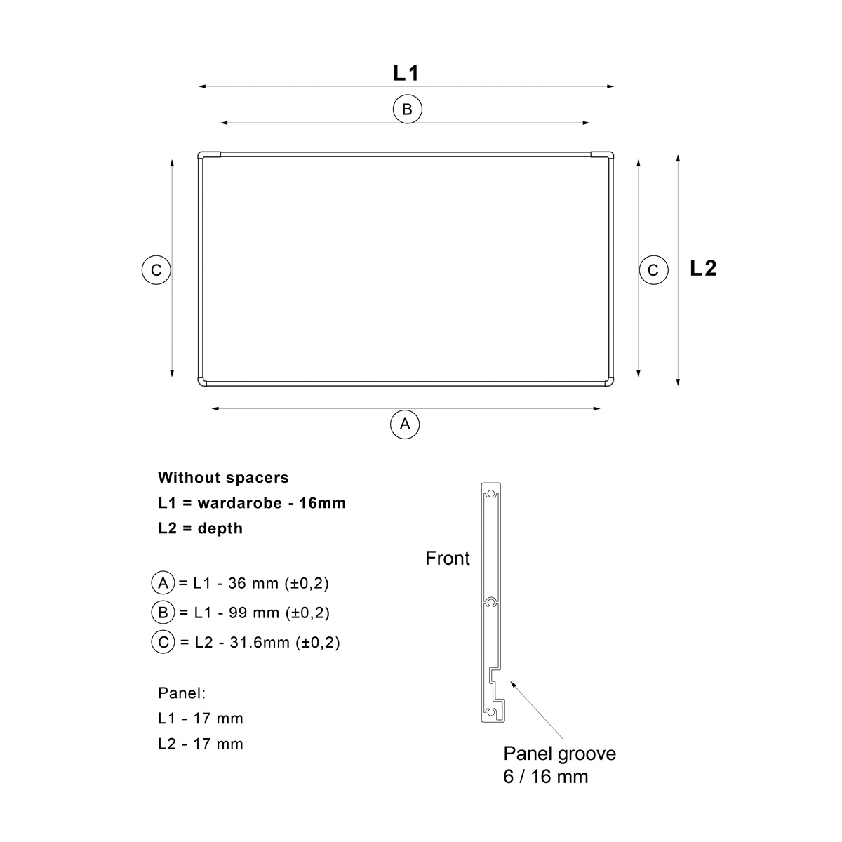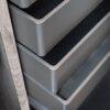 The Select MIRA Drawer is made up of a single aluminium profile on all four sides. Assembly consists of 4 corners and 2 front covers. The system is completed by an 8 or 16 mm base panel. Each kit code contains standard size components that are cut down to achieve the right dimensions; sizes shown are actual length of profiles provided. It is compatible with Grass, Blum & Hettich runners. Base not supplied.
