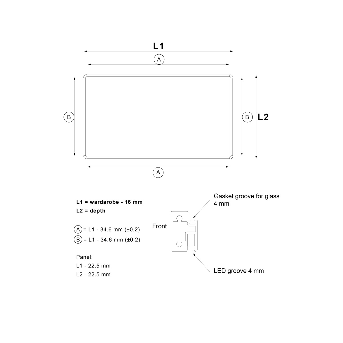 The Select MIRA Shelf is composed of an aluminium profile with a space for LEDS. Assembly consists of 4 corners and 4 covers. Each kit code contains standard size components that are cut down to achieve the right dimensions. The system is completed by a 4 mm thick glass or other material shelf, silicone profile, LED strip, and shelf supports.