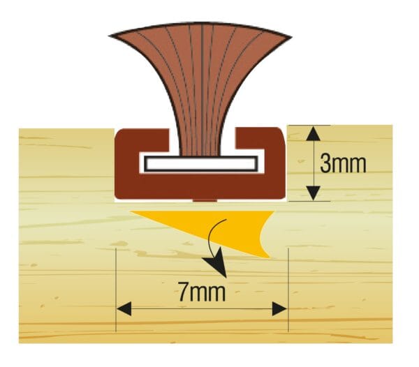 2.2m Slide pile seal – A rigid PVC carrier system complete with 6.5mm slide pile containing a dust fin. Slide pile is also available without a carrier. Special router cutters are available for cutting correct housing grooves. Available in white or brown