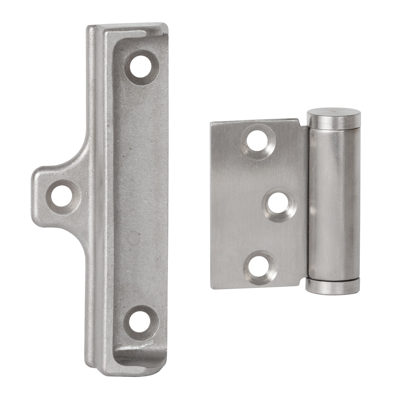 Tommafold Security hinge, Satin Stainless Steel – Provides additional security between the top and bottom pivots and prevents the door from bowing. To be used on the fixed pivot edge of the door panel.
