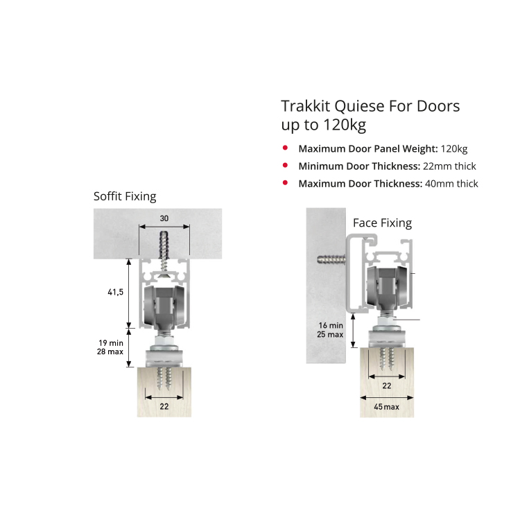 Trakkit Quiesce – Straight Sliding Door Runner Kit (for one door)- Max Weight Door: 120kgcabine