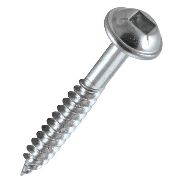 Box of 500 self-tapping wood screws with a square drive mushroom head and cutting point for pulling up any joint tightly and securely without splitting timber components.