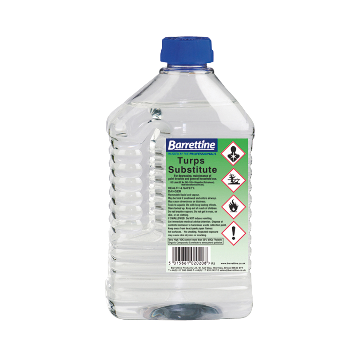 Turps Substitute – A general purpose solvent especially suited for cleaning and removing heavy oil deposits and grease stains from most surfaces and mechanical equipment. Can be used to clean oil-based coatings from brushes, rollers and tools. FLAMMABLE & HARMFUL, flash point = 41’C, specific gravity = 0.79 g/ml, miscible only with oils, dissolves heavy oil stains. Available in 2L and 4L